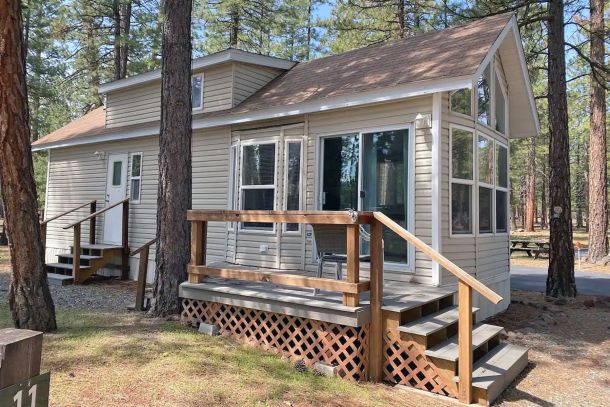 Osprey - beautiful, cozy cabin has vaulted ceilings and an open deck. Features queen bed, 2 twin beds in the loft and Simmons mattress on Futon that makes into double bed. Full size bath with shower over tub. Beautiful views of the lake from dining area and living area bay windows. This completely furnished cabin includes all linens and sleeps 6.